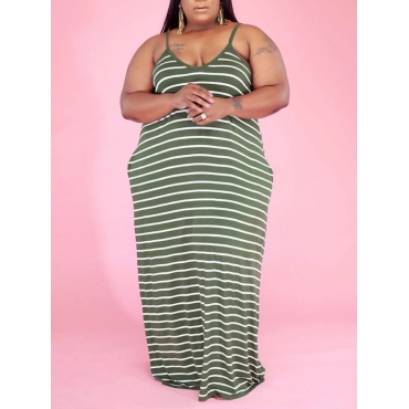 Lovely Casual Spaghetti Strap Striped Light Green Floor Length Plus Size Dress
