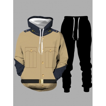 Lovely Casual Color-lump Patchwork Drawstring Black Men Two Piece Pants Set