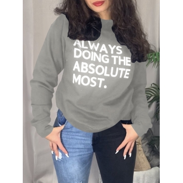Lovely Casual O Neck Letter Print Grey Hoodie