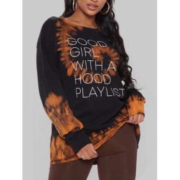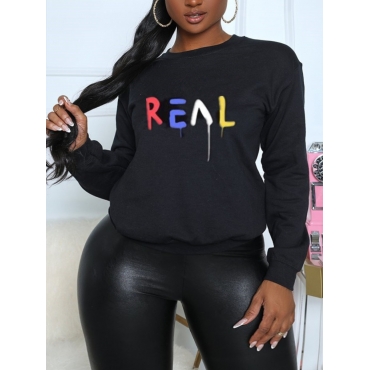 Lovely Casual O Neck Letter Print Black Hoodie