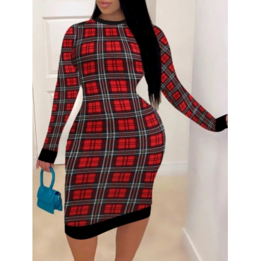 Lovely Casual Plaid Print Patchwork Skinny Red Knee Length Dress