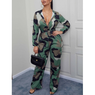 Lovely Casual Pocket Design Camo Print Patchwork One-piece Jumpsuit
