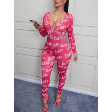 Lovely Stylish Letter Print Rose Red One-piece Jumpsuit(Batch Print)