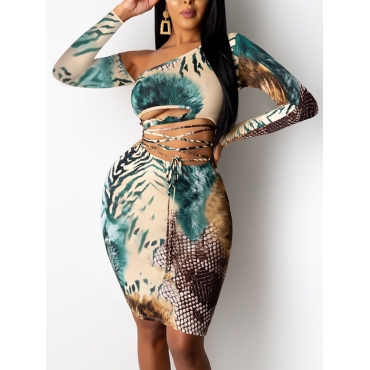 Lovely Sweet One Shoulder Lace-up Hollow-out Green Knee Length Dress