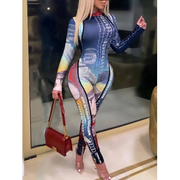 Lovely Stylish Letter Print Patchwork Multicolor One-piece Jumpsuit