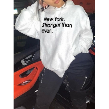 Lovely Casual Letter Print Loose White Hoodie
