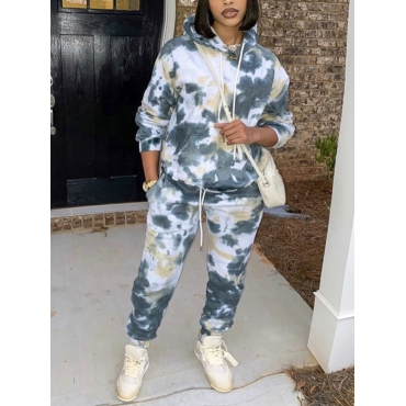 Lovely Casual Tie Dye Patchwork Drawstring Green Two Piece Pants Set