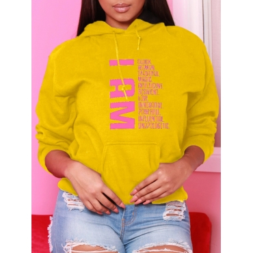 Lovely Leisure Hooded Collar Letter Print Yellow Hoodie