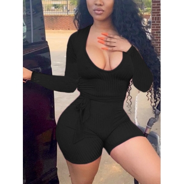 Lovely Chic V Neck Lace-up Black One-piece Romper