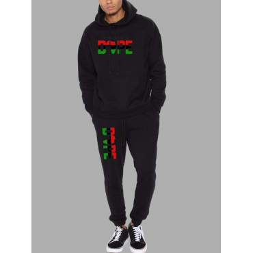 Lovely Street Letter Print Drawstring Black Men Two Piece Pants Set