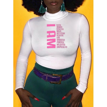 Lovely Sweet Half A Turtleneck Letter Print Pink T-shirt