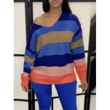 Lovely Street V Neck Striped Stitching Multicolor Sweater