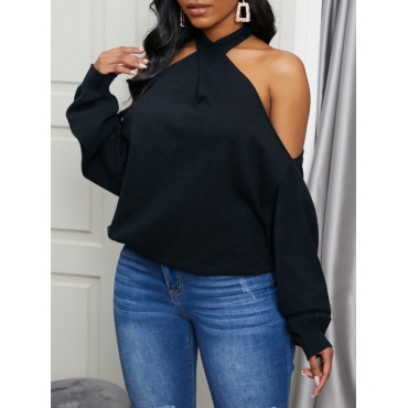 Lovely Cross-over Design Black Sweater