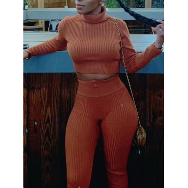 Lovely Casual Turtleneck Long Sleeve Jacinth Two Piece Pants Set