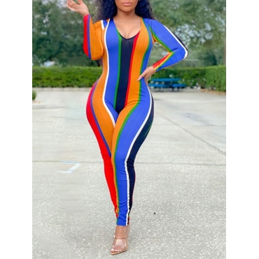 Lovely Casual V Neck Stitching Multicolor One-piece Jumpsuit