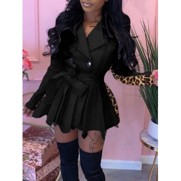 Lovely Stylish Leopard Print Patchwork Black Coat