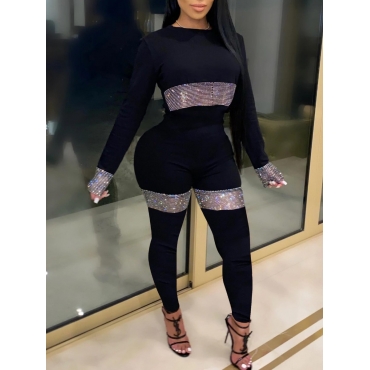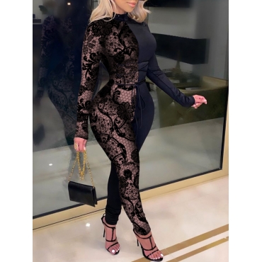 Lovely Casual O Neck Patchwork Black One-piece Jumpsuit