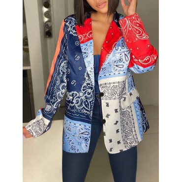 Lovely Casual Turndown Collar Print Patchwork Multicolor Blazer