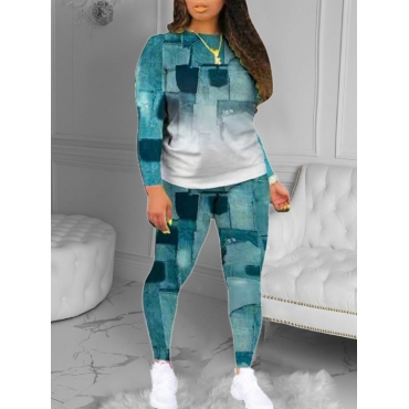 Lovely Casual Tie Dye Print Blue Two Piece Pants Set