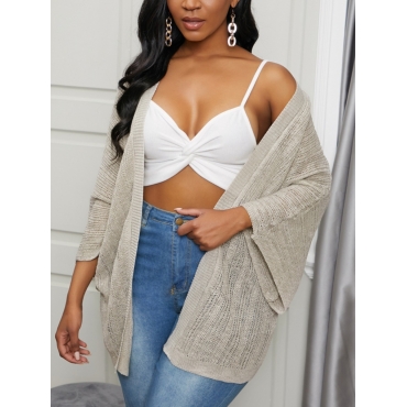 Lovely Stylish Print Loose Light Tan Cardigan