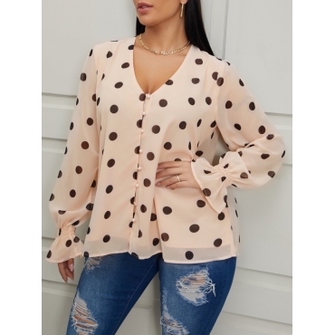 Lovely Trendy V Neck Dot Print Light Camel Blouse