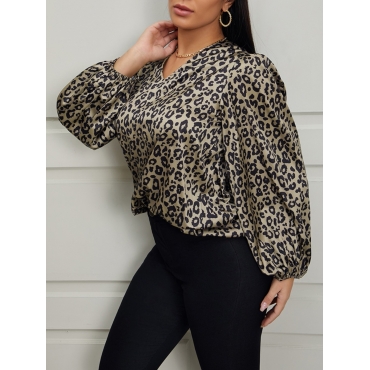 Lovely Trendy V Neck Leopard Print Brown Blouse