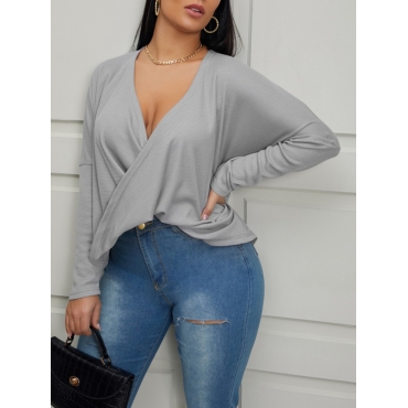 Lovely Leisure V Neck Cross-over Design Grey T-shirt