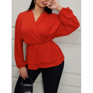 Lovely Trendy V Neck Loose Jacinth Blouse