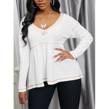 Lovely Casual V Neck Loose Fold Design White T-shirt