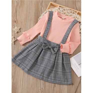 Lovely Casual Plaid Print Patchwork Pink Girl Two Piece Skirt Set
