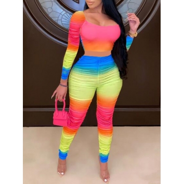 Lovely Chic Square Collar Gradient Multicolor Two Piece Pants Set