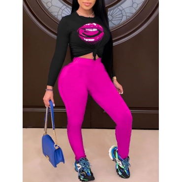 Lovely Casual Lip Print Rose Red Two Piece Pants Set
