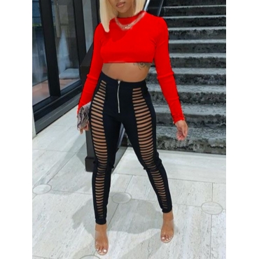 Lovely Street Hollow-out Crop Top Red Two Piece Pants Set
