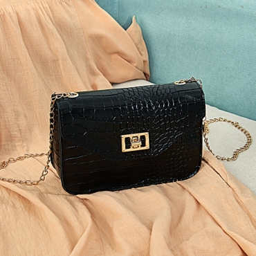 Lovely Trendy Chain Strap Black Crossbody Bag