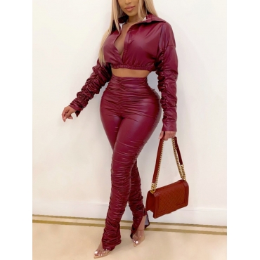Lovely Street Dropped Shoulder Fold Design Dull Red Two Piece Pants Set