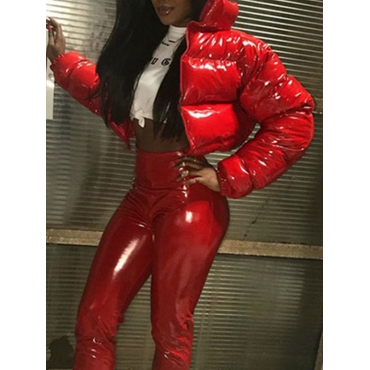 Lovely Casual Turndown Collar Zipper Design Red Parka