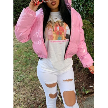 Lovely Casual Turndown Collar Zipper Design Pink Parka