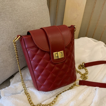 Lovely Trendy Chain Strap Wine Red Crossbody Bag