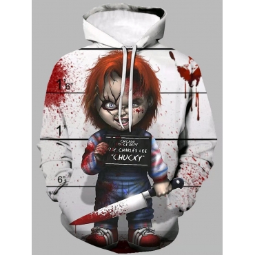 Lovely Street Hooded Collar Print White Boy Hoodie