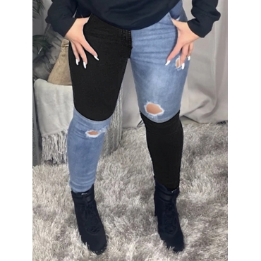 Lovely Street Broken Holes Skinny Blue Jeans