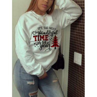 Lovely Casual O Neck Letter Print White Hoodie