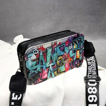 Lovely Trendy Graffiti Print Black Crossbody Bag