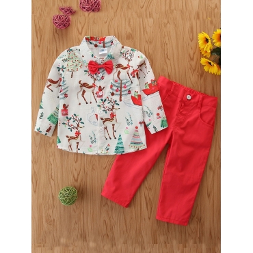 Lovely Trendy Shirt Collar Print Watermelon Red Boy Two-piece Pants Set