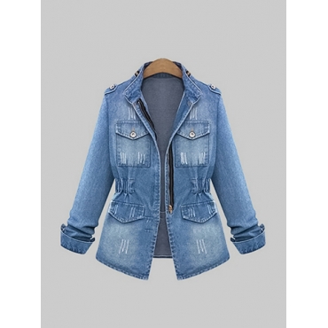 Lovely Trendy Turndown Collar Pocket Patched Blue Plus Size Denim Jacket