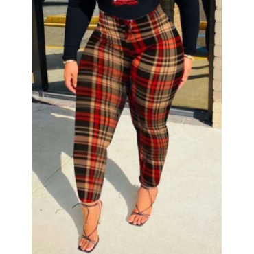 Lovely Stylish High-waisted Grid Print Red Pants