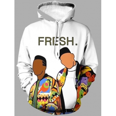 Lovely Casual Hooded Collar Print White Men Hoodie