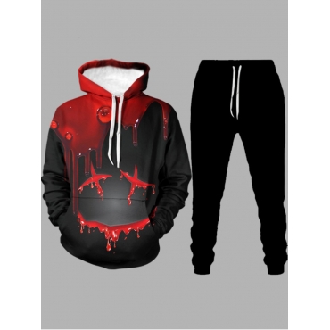 Lovely Casual Hooded Collar Print Black Men Two-piece Pants Set