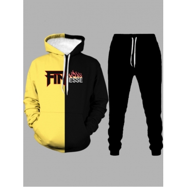 Lovely Casual Hooded Collar Letter Print Patchwork Black Men Two-piece Pants Set