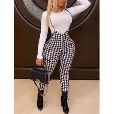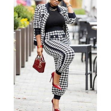 Lovely Stylish Grid Print Black Two Piece Pants Set