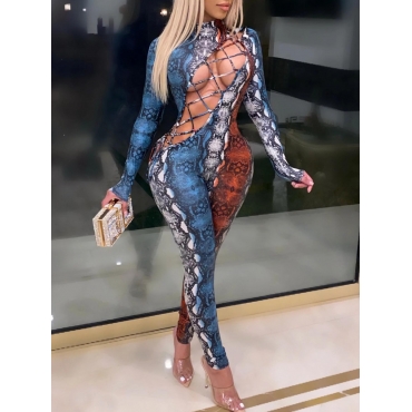 Lovely Sexy Snakeskin Print Bandage Design One-piece Jumpsuit(Batch Print)
